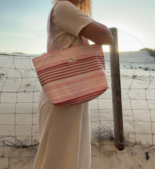 Tote Bag Zippé Rose Rayures
