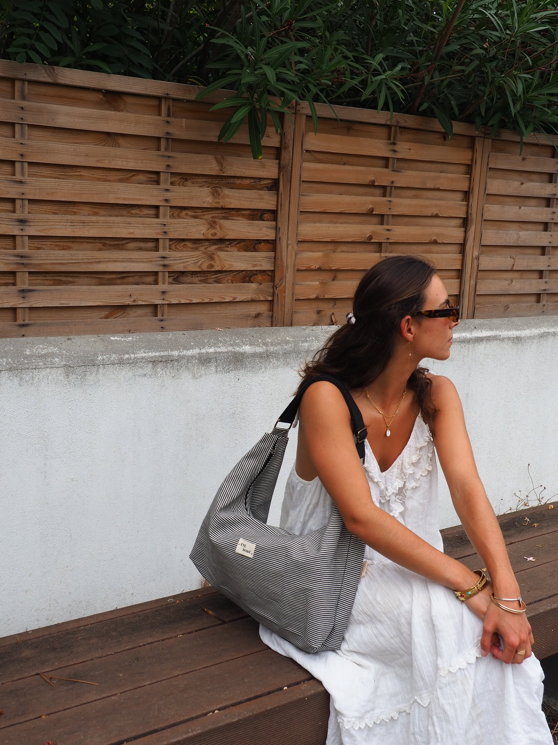 Le sac Lune vous permet de ranger votre ordinateur, vos affaires du quotidien, vos courses... Son format paysage, ses soufflets, sa poche zippée à l’intérieur et son zip de 35cm vous permettront une belle contenance et une facilité d'ouverture.