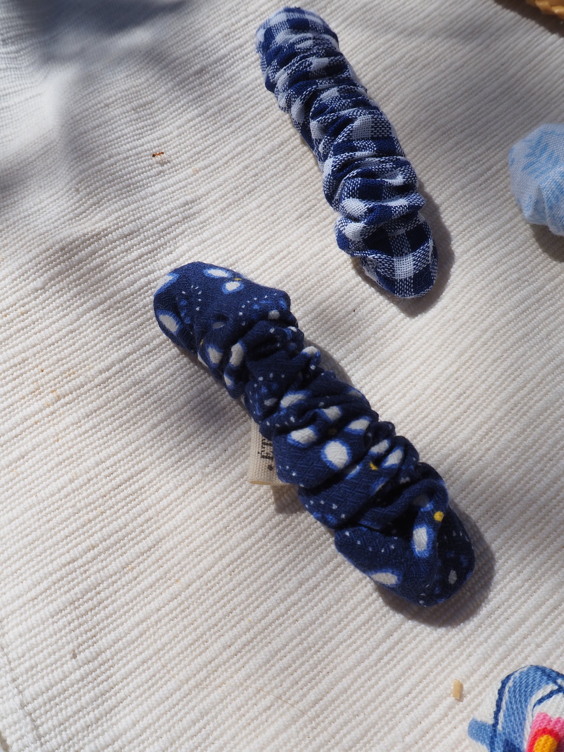 La barrette plissée permet d’attacher vos cheveux avec élégance sans pour autant utiliser un chouchou. Elle permet de clipser une belle masse de cheveux et tient également sur cheveux fins. Fabriquée en métal rhodié, la structure est conçue exprès pour durer dans le temps et ne pas rouiller. Le tissu provient d'une ancienne boutique de prêt-à-porter.