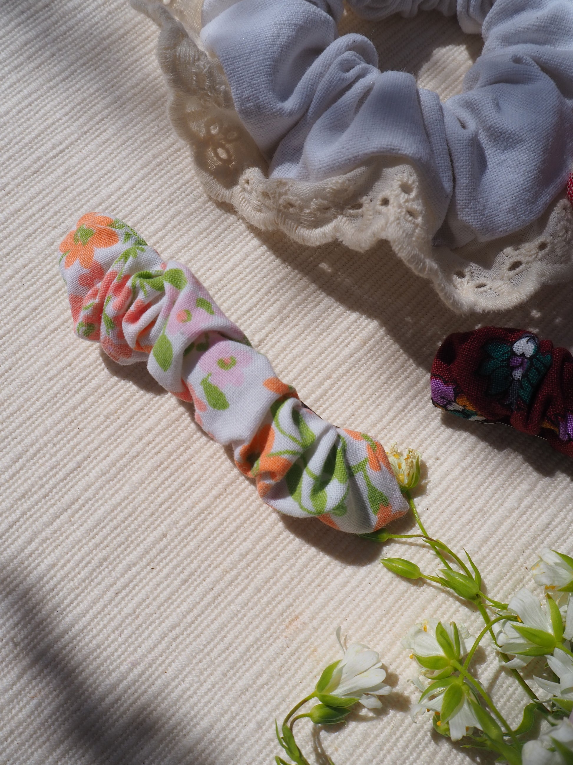 La barrette plissée permet d’attacher vos cheveux avec élégance sans pour autant utiliser un chouchou. Elle permet de clipser une belle masse de cheveux et tient également sur cheveux fins. Fabriquée en métal rhodié, la structure est conçue exprès pour durer dans le temps et ne pas rouiller. Le tissu provient d'un draps chiné en recyclerie.