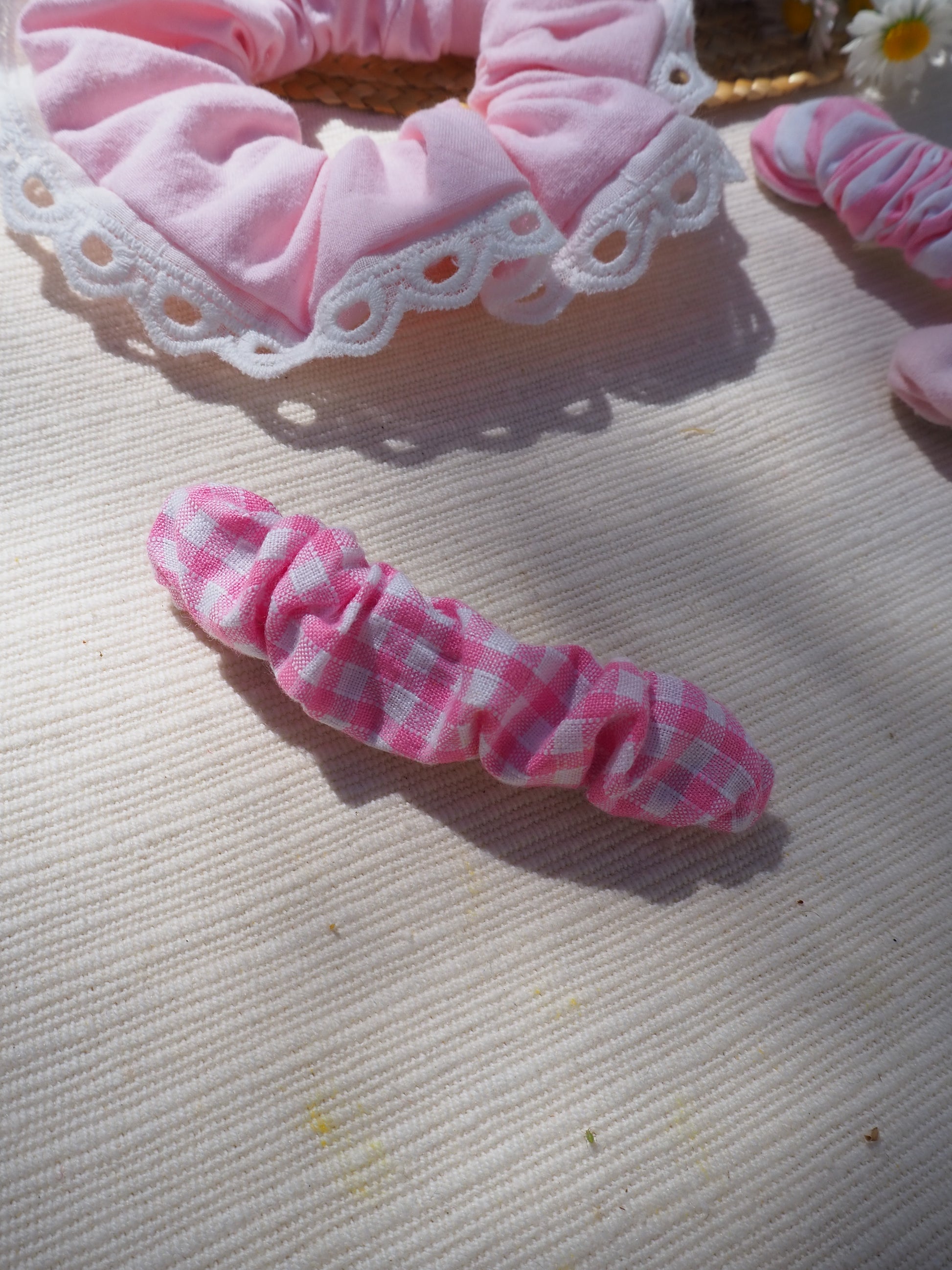 La barrette plissée permet d’attacher vos cheveux avec élégance sans pour autant utiliser un chouchou. Elle permet de clipser une belle masse de cheveux et tient également sur cheveux fins. Fabriquée en métal rhodié, la structure est conçue exprès pour durer dans le temps et ne pas rouiller. Le tissu provient d'une ancienne boutique de prêt-à-porter.