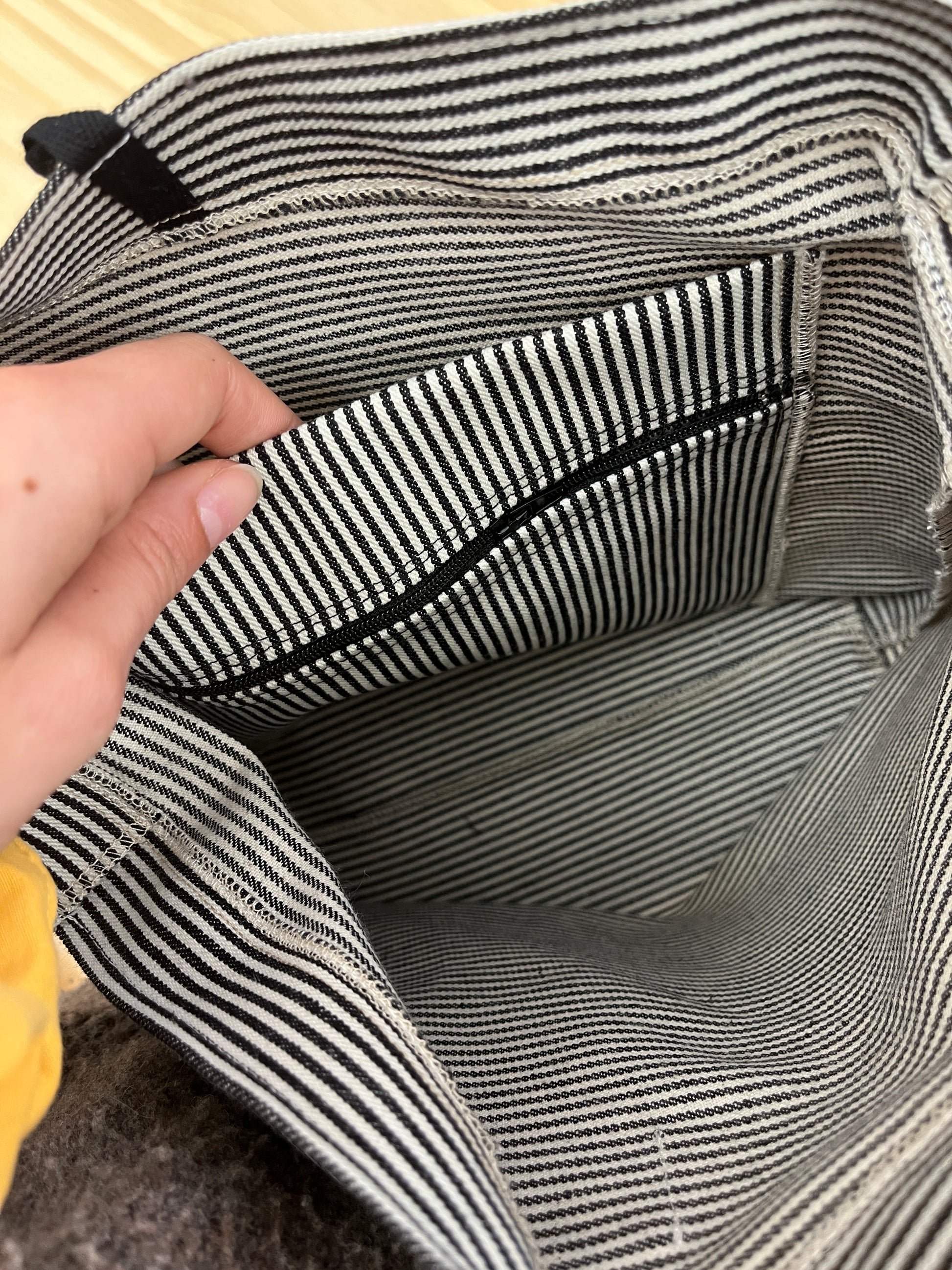Dimensions : hauteur 25cm, 8cm de soufflet, 32cm de largeur, poche intérieur zip de 20cm, 16cm de hauteur de poche